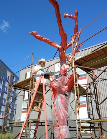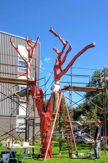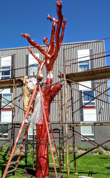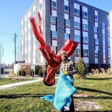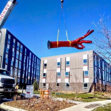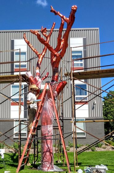 Via NE Sculpture, he was commissioned to create a sculpture, "Static," for Hook & Ladder Apartments in NE Minneapolis.