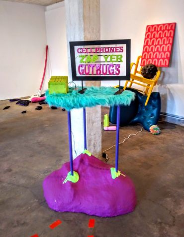 Cellular Home Invasion transforms the gallery space into a recreation of the patient’s traumatic home environment to “aesthetically enact” the competing scientific paradigms (in biology and physics) that currently, but contradictorily, define the post-digital/post-human “health” and “normalcy” of our bodies. Via sculpture and installation, we utilize feminist praxis to reveal – in the era of the microbiome – what our previously considered “safe” and “sterile” domestic spaces and bodies really are: Living, breathing organic communities, of which “we” are only one tiny (10%) part. Simultaneously we invite audience members to interactively realize the materiality of their cellular/wireless devices: Invading the domestic installation space with the typically invisible and unheard (but exhaustively peer-reviewed) academic and environmental reality of the electromagnetic fields that power the “internet of things” and make us (bio-chemically) post-human/post-digital “mutations” in search of recognition, empathy, and humane medical subjectivity.