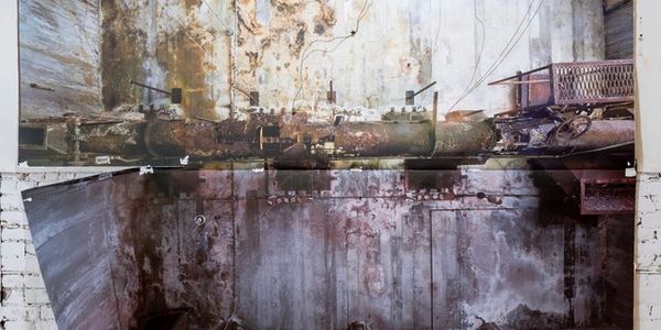 For CONSTRUCTION + RECONSTRUCTION, Steele has printed his collection, LANDSHIFT, at a scale sized to make them readily available and engaging to the viewer. Hanging from above, larger than life, they are deployed in overlapping planes inspired by Mies van der Rohe’s Barcelona Pavilion.