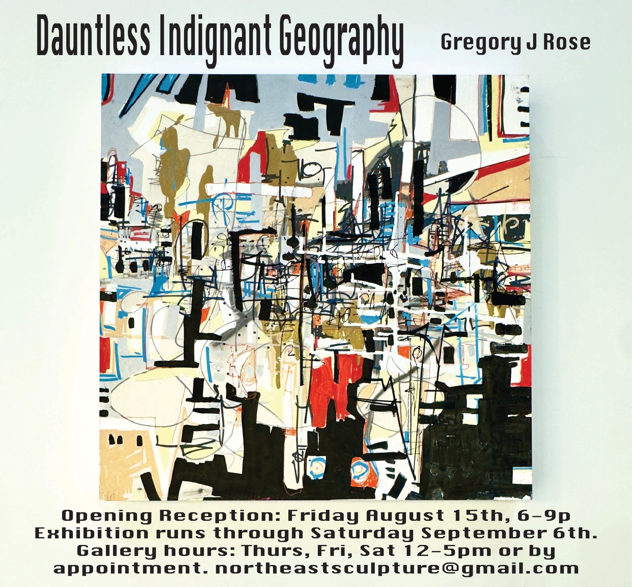 The Dauntless Indignant Geography Series are visual Koans (documents that test one’s understanding of Zen). DIGS is a synthesis of conceptual and representational imagery orchestrated and rooted in abstract expressionistic maps that guided the viewer through the visual form of the city and urban space.