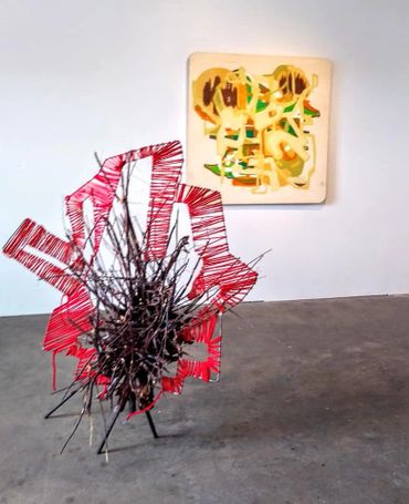 One of my other concerns in my practise is the physicalness of my objects. I want them to have a presence that engages the viewer vercerally. The form they inhabit is both muscular and yeilding. I try to surprise myself while building, which is difficult because I have insider information.