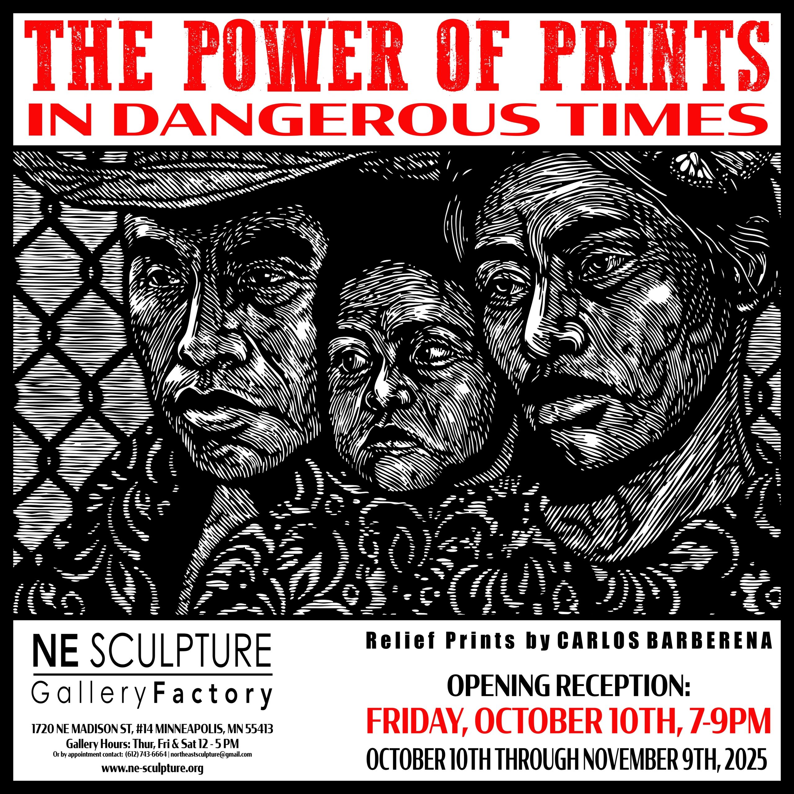 Barberena has exhibited individually in Costa Rica, Estonia, France, Mexico, Nicaragua, Spain and The United States of America, his work also has been shown in Art Biennials, Museums, Galleries and Cultural Centers around the world. He has received various awards, most notably “The Otis Philbrick Memorial Prize” – Collection: The Museum of Fine Arts, Boston – selected by Curators Edward Saywell & Patrick Murphy – 2023 North American Print Biennial, Boston, MA; “Second Place Juror Award” in the 44th National Print Exhibition, ARTLINK Gallery, Fort Wayne, IN; “2e Prix de la 13e Biennale Internationale de Trois-Rivieres” Québec, Canada; “Best in Show – PrintAustin: The Contemporary Print” 2023 Juried Exhibition, The Art Galleries at ACC, Austin, TX; “The Elizabeth Catlett Memorial Award” 2021 MAPC Juried Exhibition, University of Iowa; “DNSPE Purchase Award 2022” Bradbury Art Museum, Arkansas State University, Jonesboro, AR; – Second Prize Winner – in the “9th Annual Art Competition” at the Bridgeport Art Center, Chicago; “SPARK Grant Award”, Chicago Artist Coalition and the Joyce Foundation; “Cross Currents: Intercambio Cultural, Chicago – Havana, 2017-2019”. MacArthur Foundation International Connections; “National Printmaking Award 2012” given by the Nicaraguan Institute of Culture, Managua, Nicaragua; “Parchemin d’Honneur”, 8 Triennale Mondial de l’Estampe et de la Gravure Originale, AMAC, Chamalieres, Auvergne, France, “Revueltas Award” for Visual Arts 2019, Pilsen Fest, Chicago, and the award poster for the Ecology and Human Rights in Banana Plantations in Costa Rica, given by GEBANA in Berlin, Germany. Find more at Barbarena's website here.