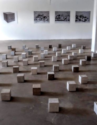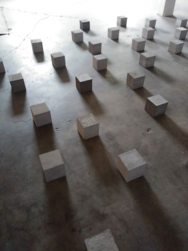 The 6”x 6”x 6" concrete cubes were fabricated as a small gesture, a personal and collective imposition. The mass of the weight conceals the dust from the streets of South Minneapolis, debris from the burnt buildings, water from Bdote (the junction where two rivers come together), granite from the pedestal of the dislodged Columbus statue in Saint Paul, sand from Fort Snelling, sweat from labor, items made by an undocumented youth, combined with a touch of personal domestic items.